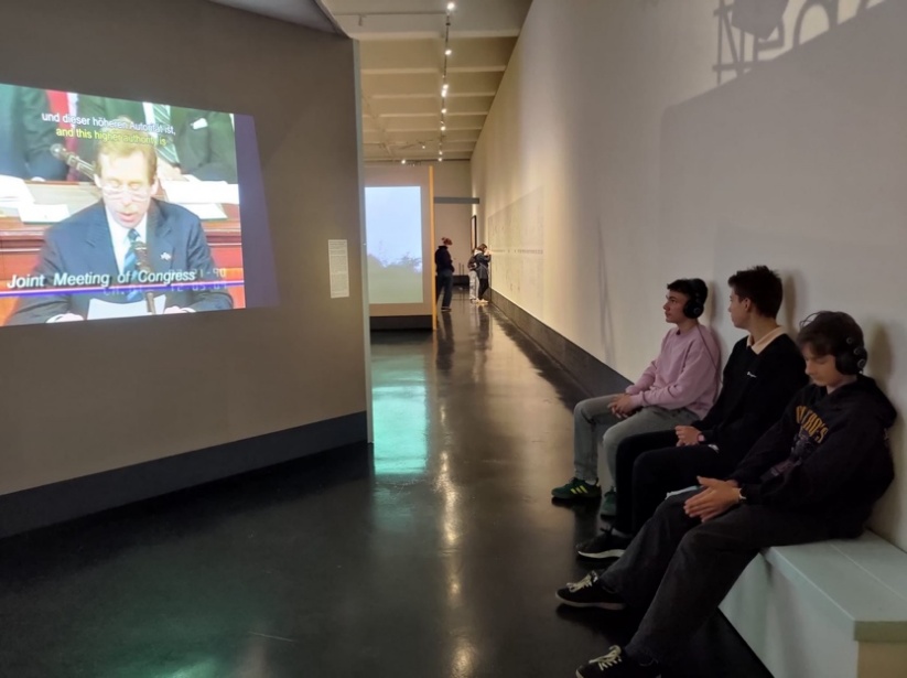 Po společné prohlídce si žáci zpracovávali ve skupinkách připravené úkoly, díky tomu si přečetli část Charty 77, prošli si na časové ose historii Československa, Polska a Východního Německa a poslechli si projevy Václava Havla. Na konci jsme se všichni sešli a debatovali nad otázkou „Musíme dnes ještě řešit téma svobody?“. Výstavu jsme si užili a těšíme se na příští akci.